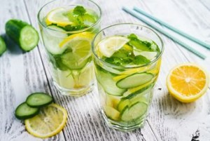 2. Режете на филийки един лимон. Почиствате от кората краставицата и също я нарязвате.